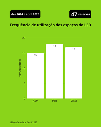 As primeiras utilizações do LED, entre 16/12/2024 e 8/4/2025, mostram que este novo espaço está a ser muito apreciado por professores e alunos.